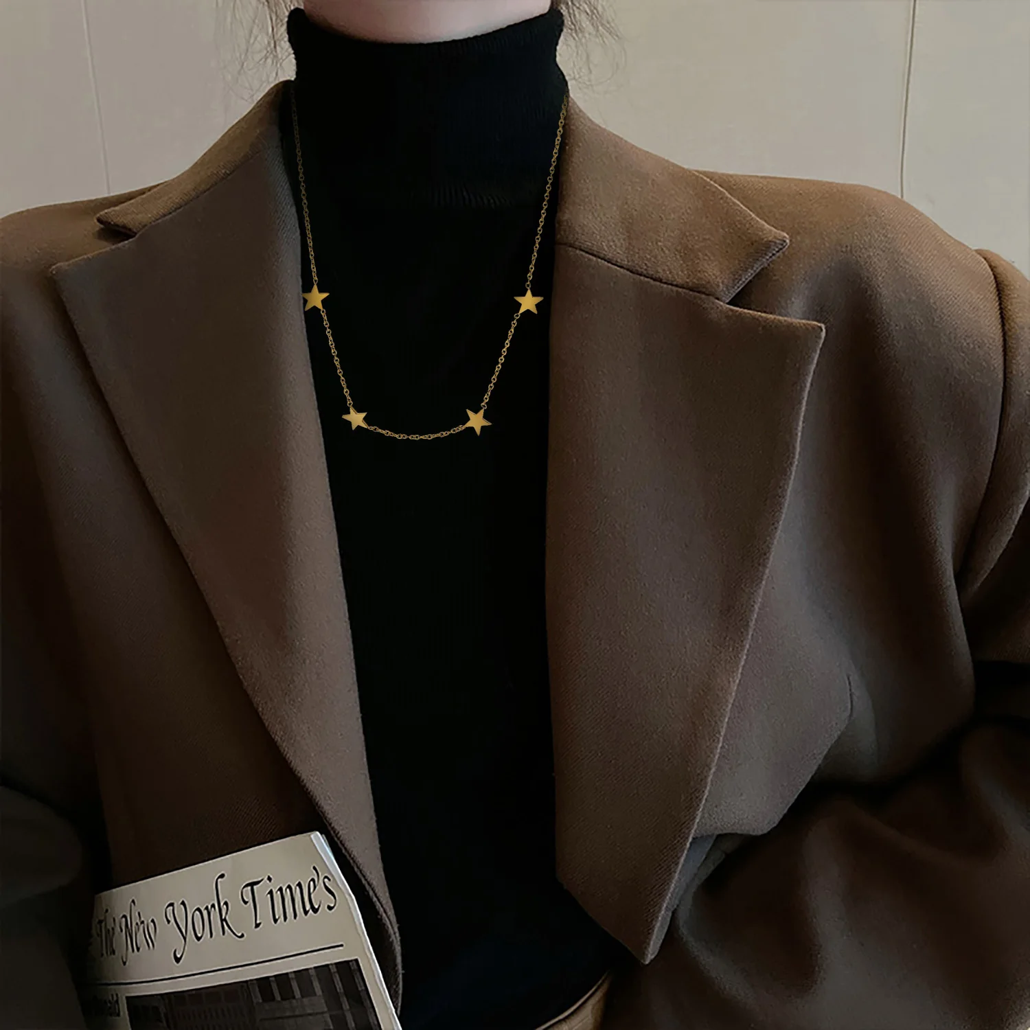 Simple 18k Gold Plated Stainless Star Tassel Pendant Necklace Lady Retro Fashion Creative Necklaces Girl Glamour Jewelry